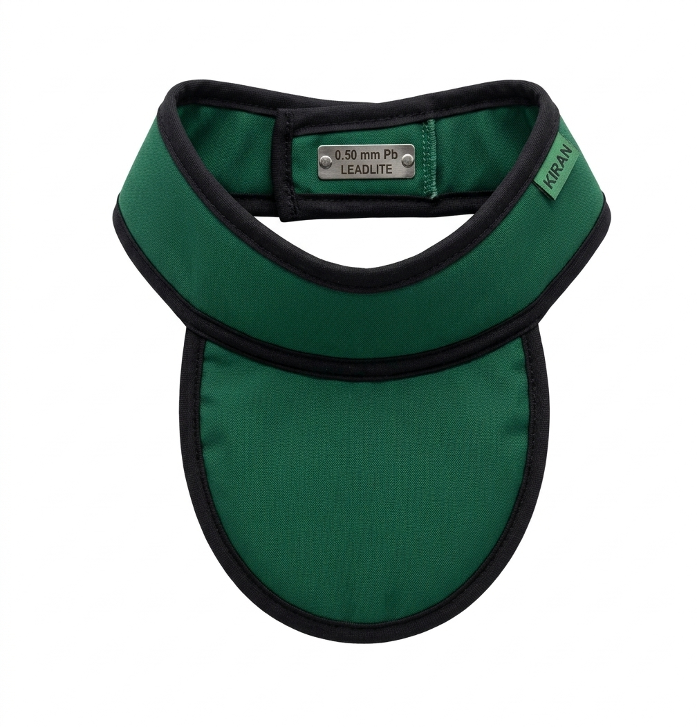The Kiran Thyroid Shield Model Classic is designed to provide reliable protection for the thyroid gland during diagnostic imaging procedures. With 0.50 mm Pb equivalent protection, it helps reduce exposure to scatter radiation in radiology and fluoroscopy environments.